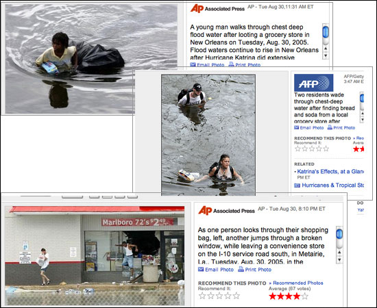 Do you remember how some people were described by major news organizations as “looters” and others as having “found food.” Do you remember exactly who were called “looters” and who “found food?”