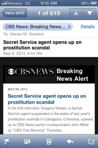 The email above that I just received is not breaking news. It is a promotion for the news broadcast on which the new details about the Secret Service prostitution will be broadcast.